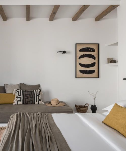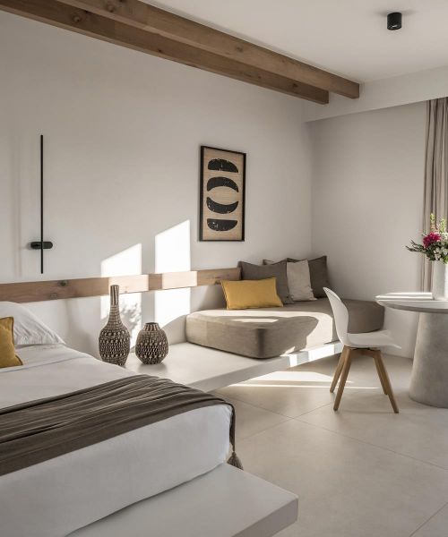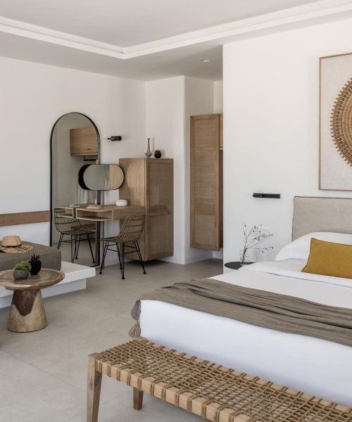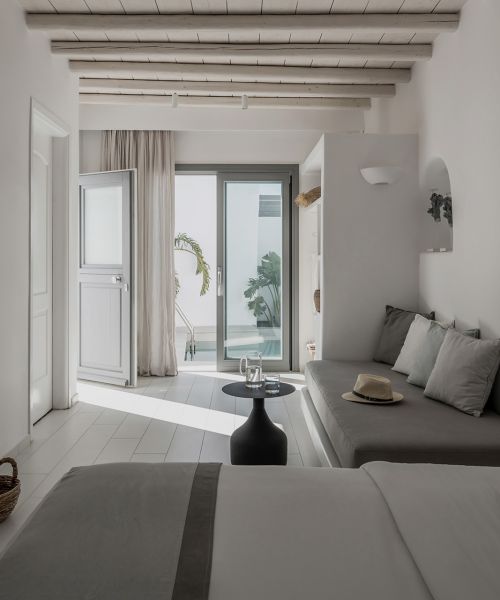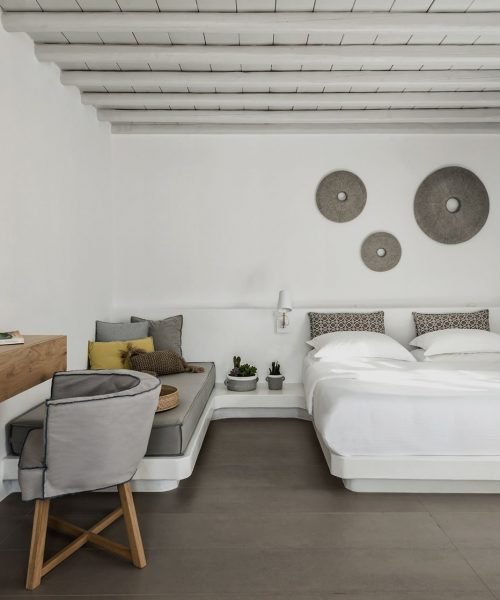 Conveniently set in a stunning yet discreet location in Mykonos, A hotel is ideal for exploring the island of the winds far from the crowds and experiencing the cosmopolitan ambiance in high comfort. Being among the best Mykonos town hotels, it features elegant accommodation options, delicious Mediterranean dining, signature cocktails, and a top-class wellness center, all complemented with meticulous services and attention to detail.